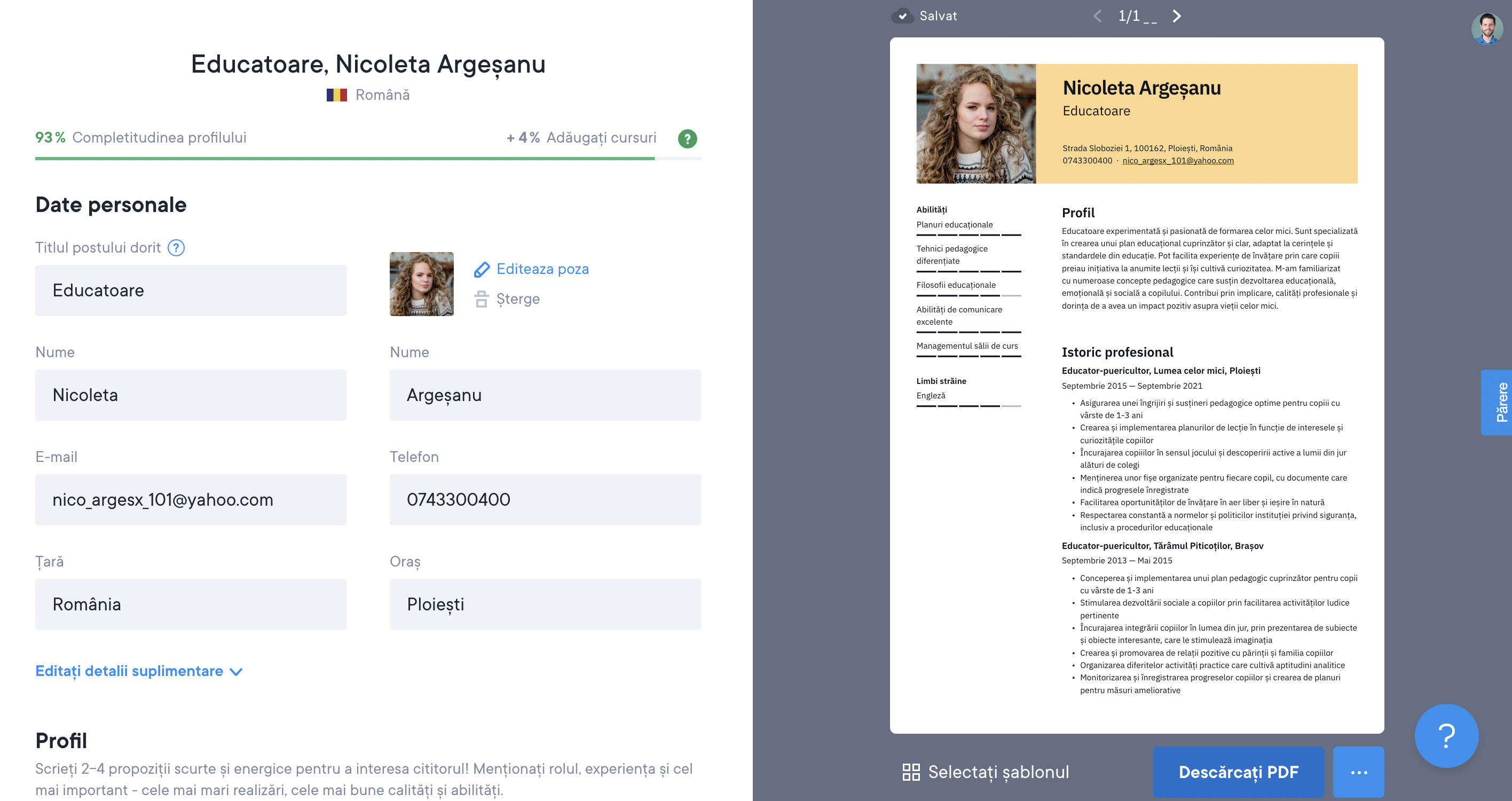 Pot să-mi descarc CV-ul în Word sau PDF?